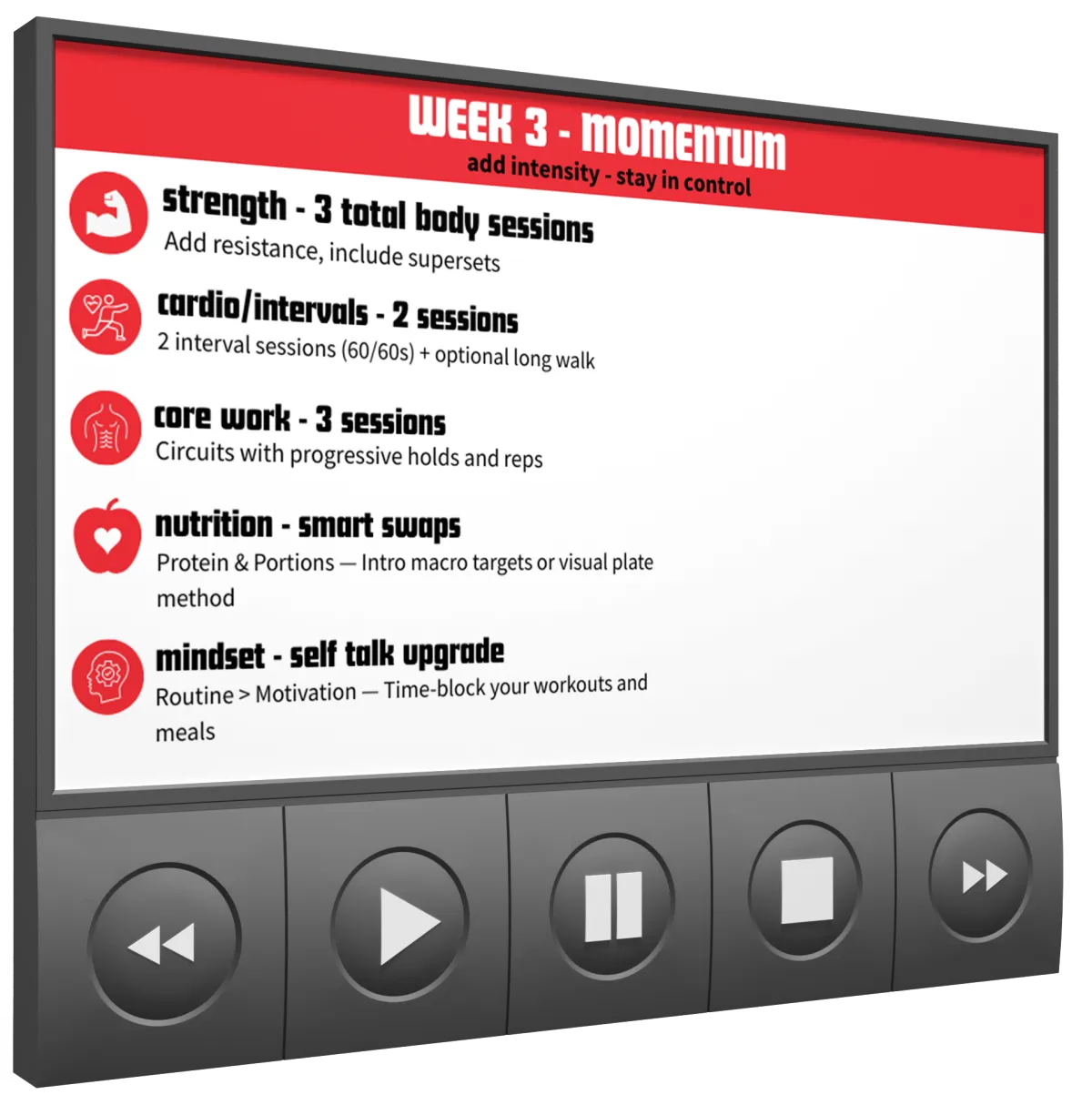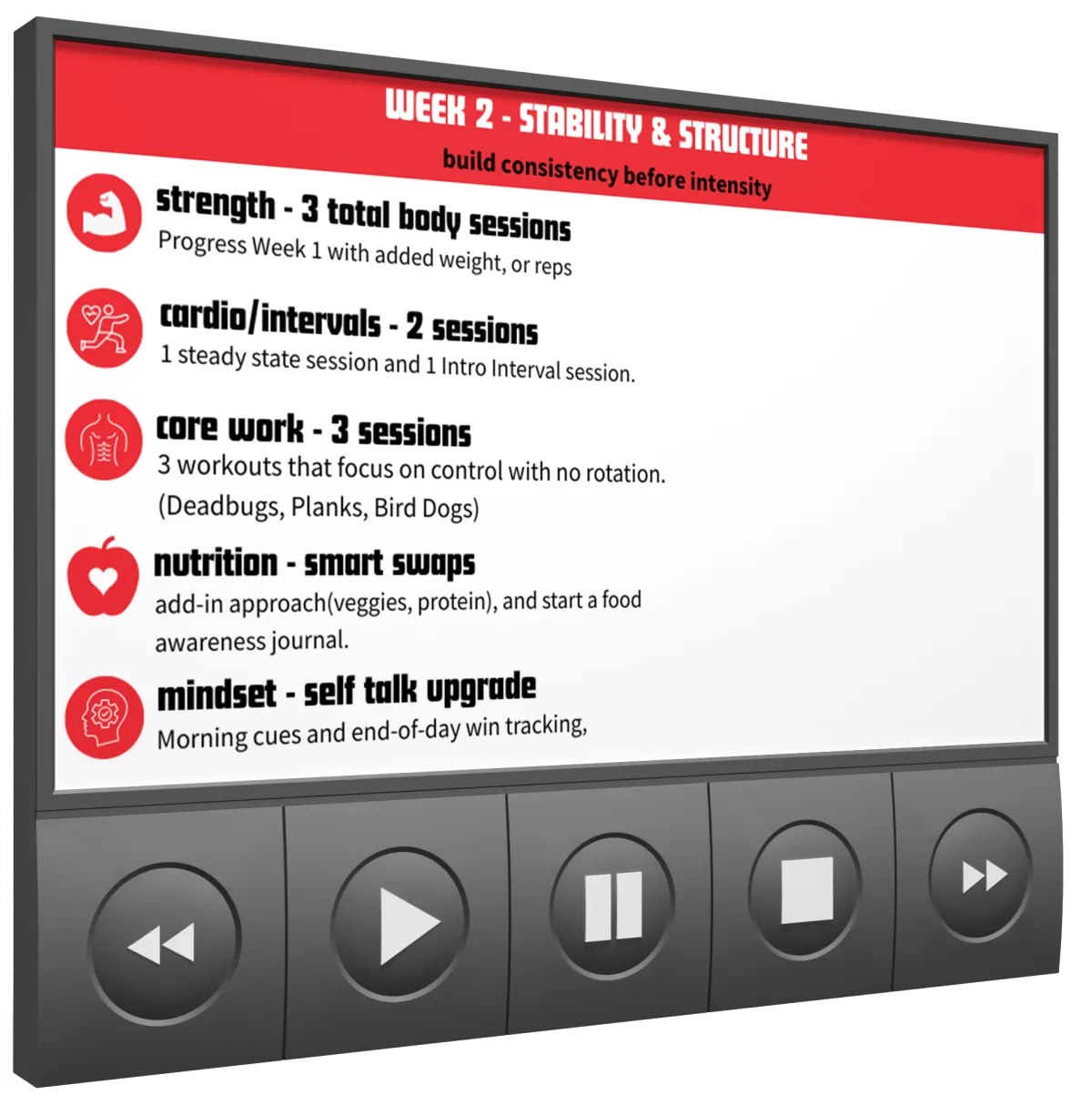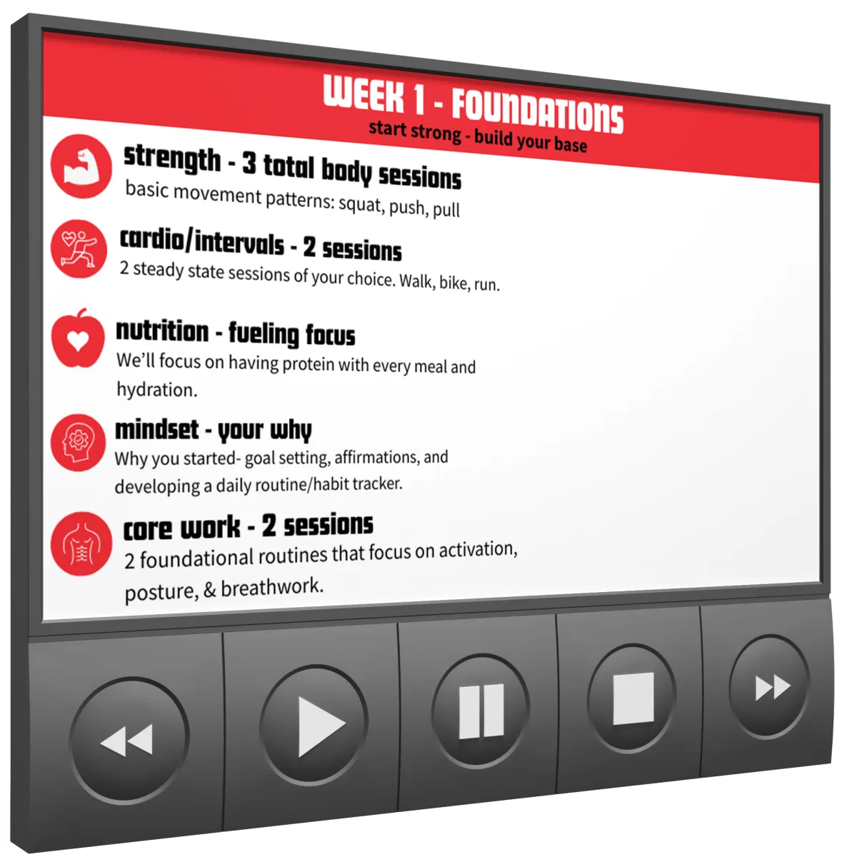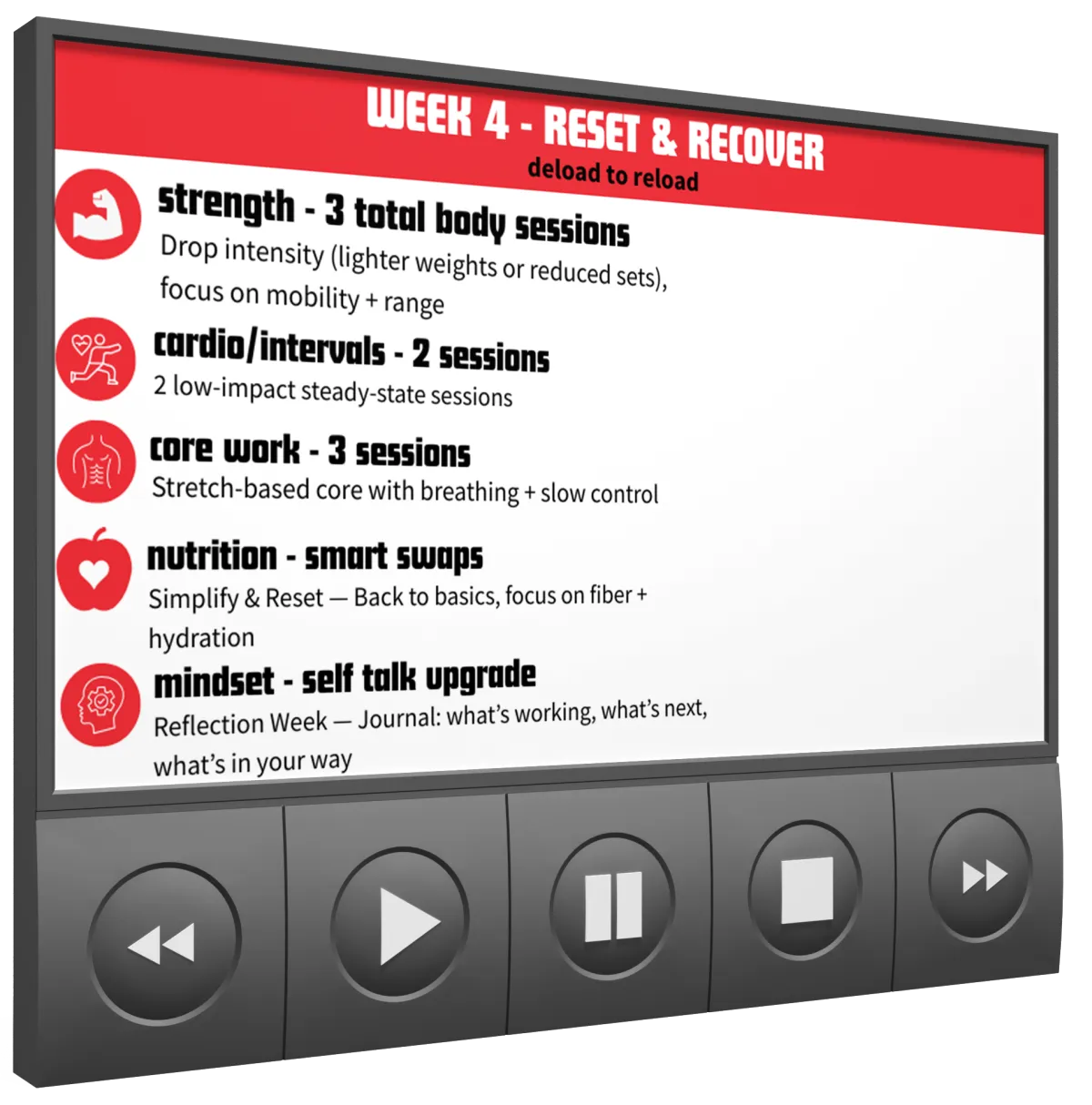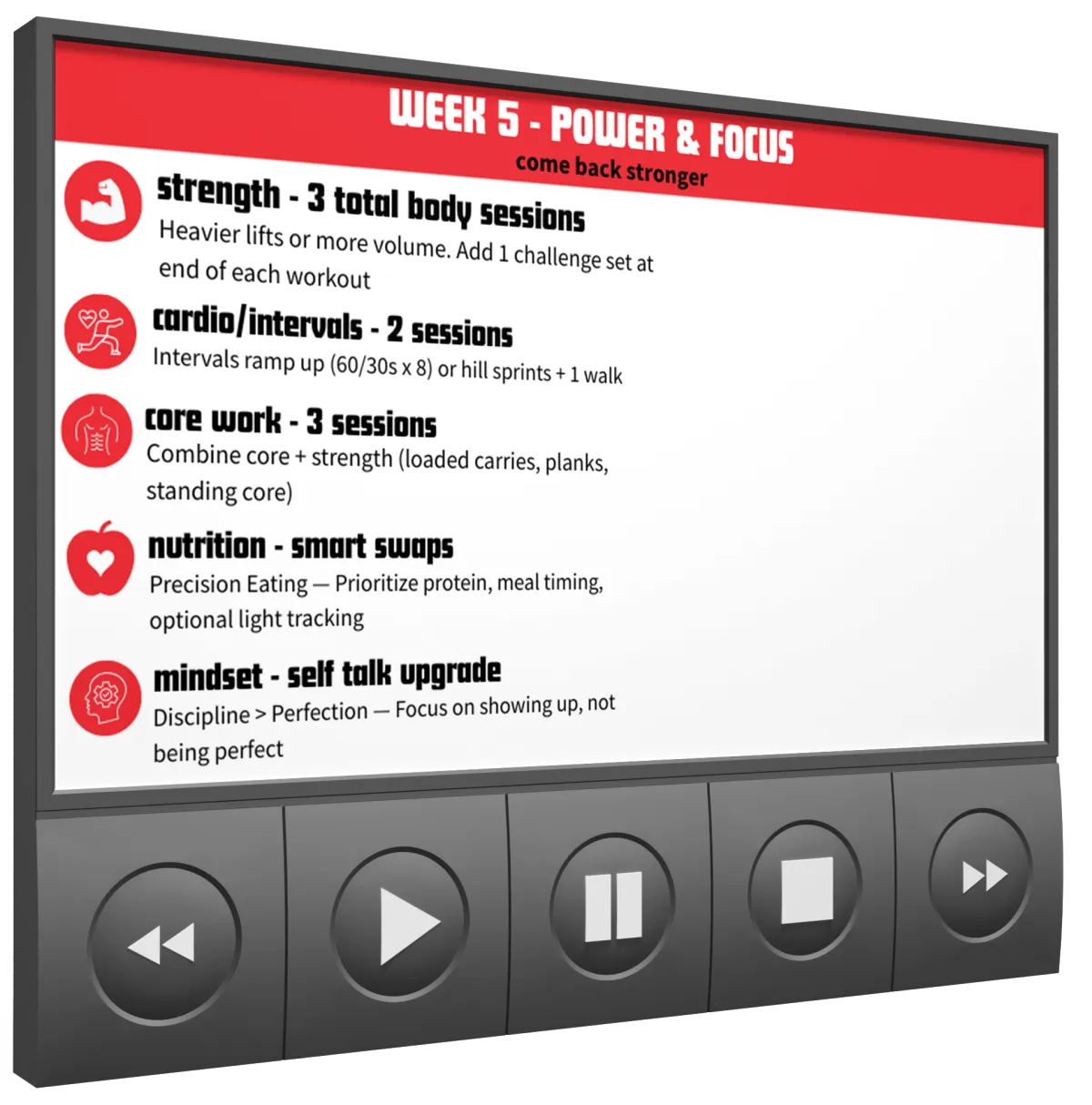 Balanced focus on strength, cardio, and recovery